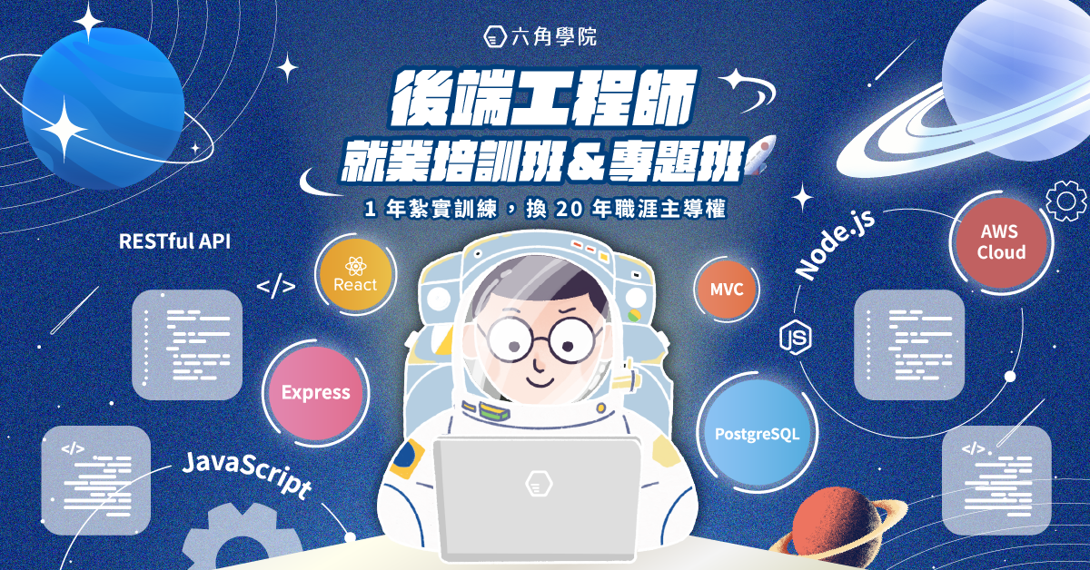 想要進入後端工程師的領域嗎?讓後端工程師就業培訓班來助你一臂之力。從 JavaScript 入門打好基礎,接續學習 Node.js 養成後端能力,再掌握雲端架構部署技術,最後將所學集大成做出一份企業級專題作品,用 1 年的紮實訓練換 20 年職涯主導權!