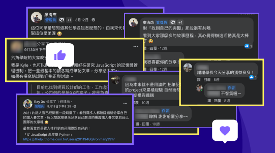 六角擁有最豐沛的社群人脈網,助您學習、求職、工作上不卡關,永遠能找到熱於分享的學長姐助您一臂之力!
