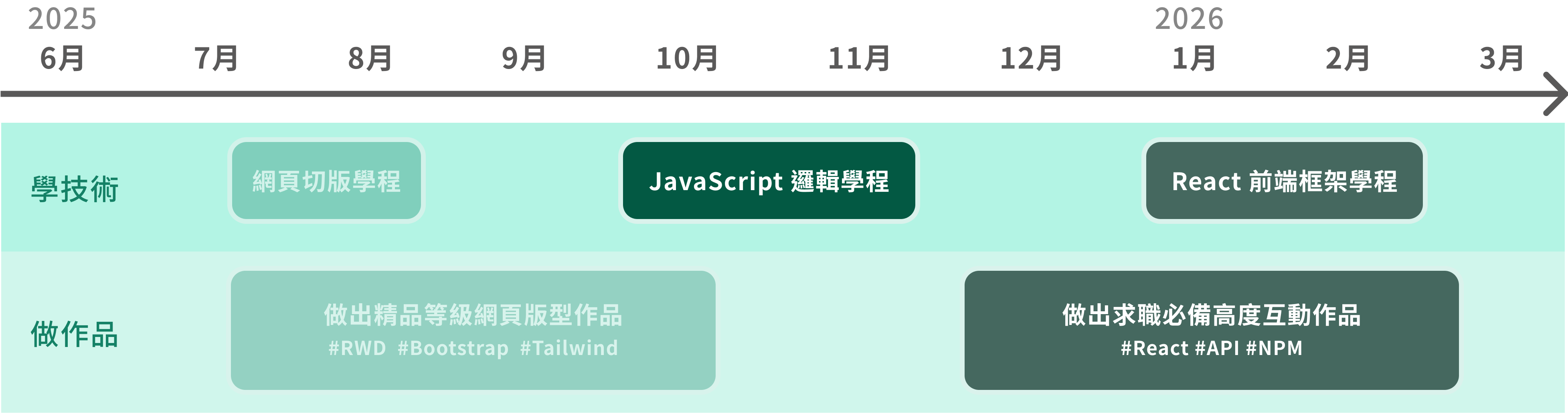 如果你有迫切性想學好 JavaScript 及一個框架,建議你選本頁面的直播課程,直播的參與互動性高,並藉由老師們獨創的前端教材和任務練習,學習效果更好。